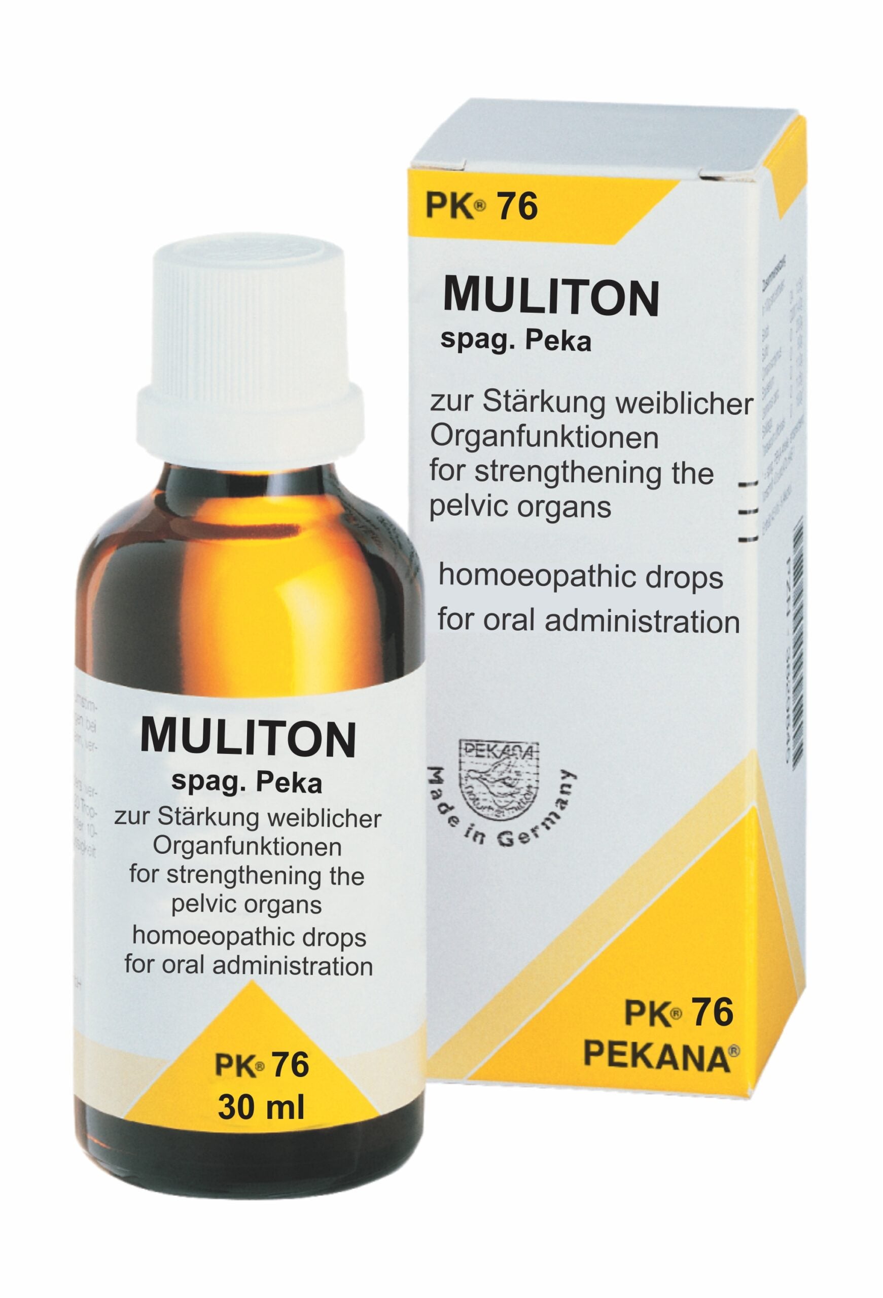 - PK 76 MULITON drops are used for drop or prolapse of the uterus, with discharge and inflammations, strengthening the pelvic organs.
